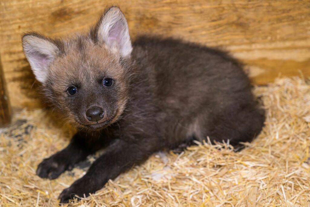 Foto 1: Mláďata vlků hřivnatých se v Zoo Praha narodila v úterý 1. března. Foto Petr Hamerník, Zoo Praha