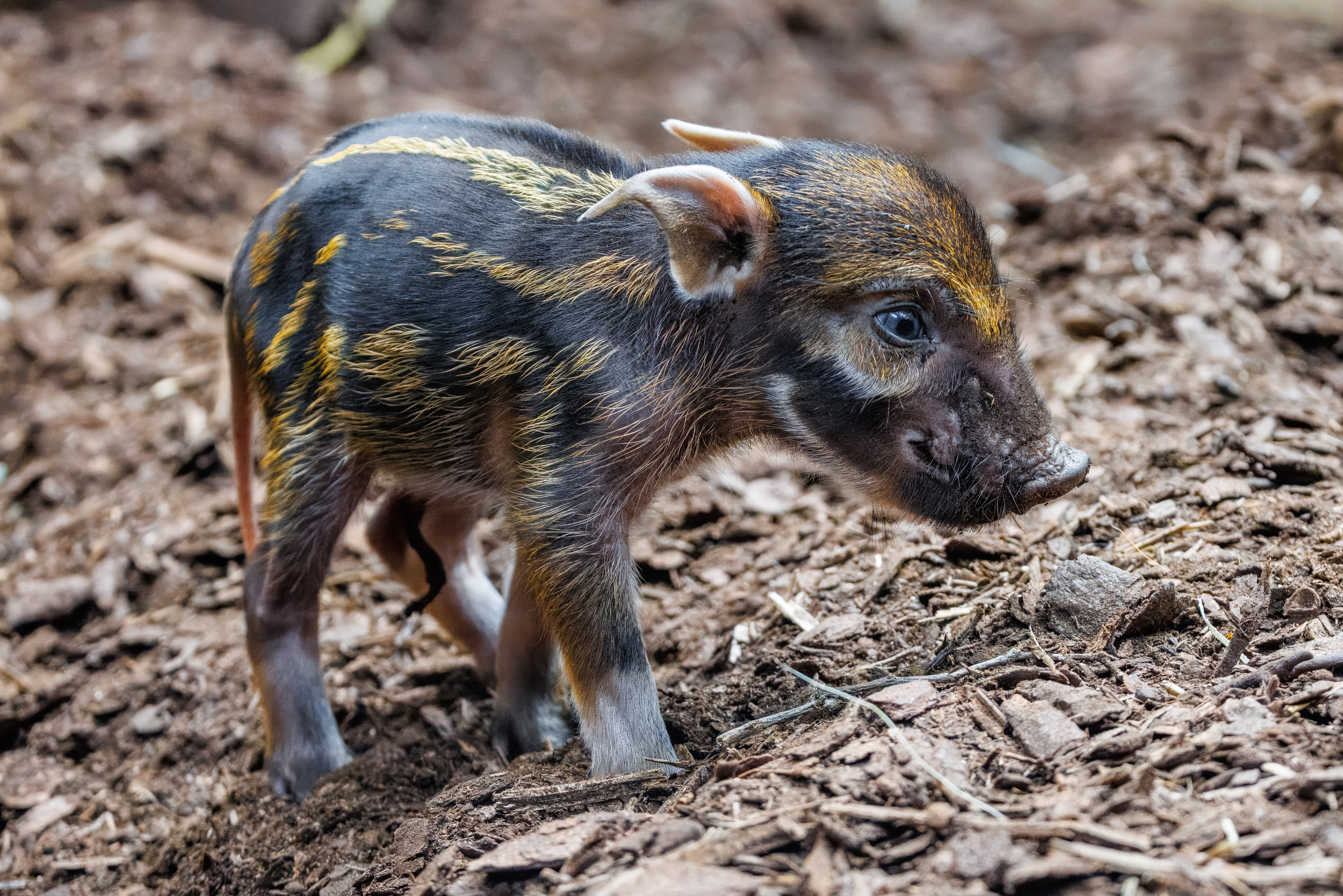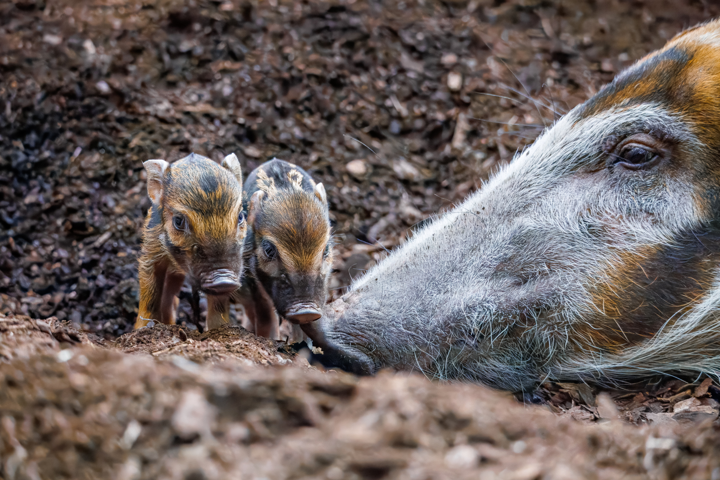 Foto 3: Malá „zlatá prasátka“ se v Zoo Praha narodila vůbec poprvé. Samice je porodila přímo v expozici a vzhledem k jejímu klidu ji chovatelé vůbec neruší a nechávají odchovu co nejpřirozenější průběh. Foto Monika Dolejšová, Zoo Praha