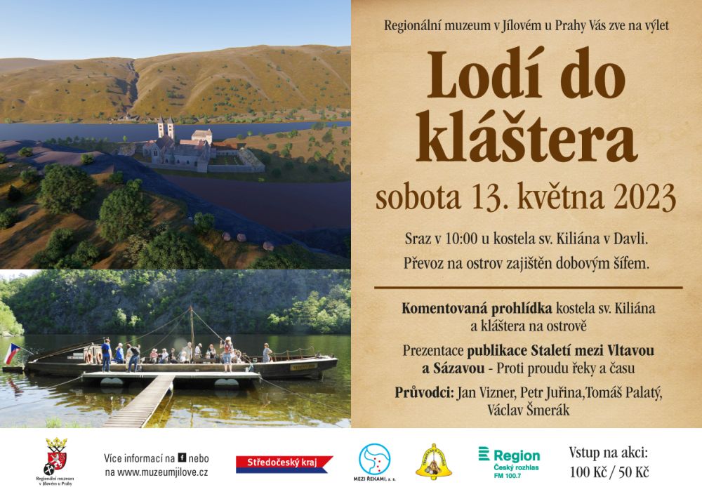 Již tuto sobotu 13.5. znovu pořádáme Váš oblíbený výlet Lodí do kláštera na ostrově u Davle. Sraz je v 10:00 u kostela sv. Kiliána v Davli.
