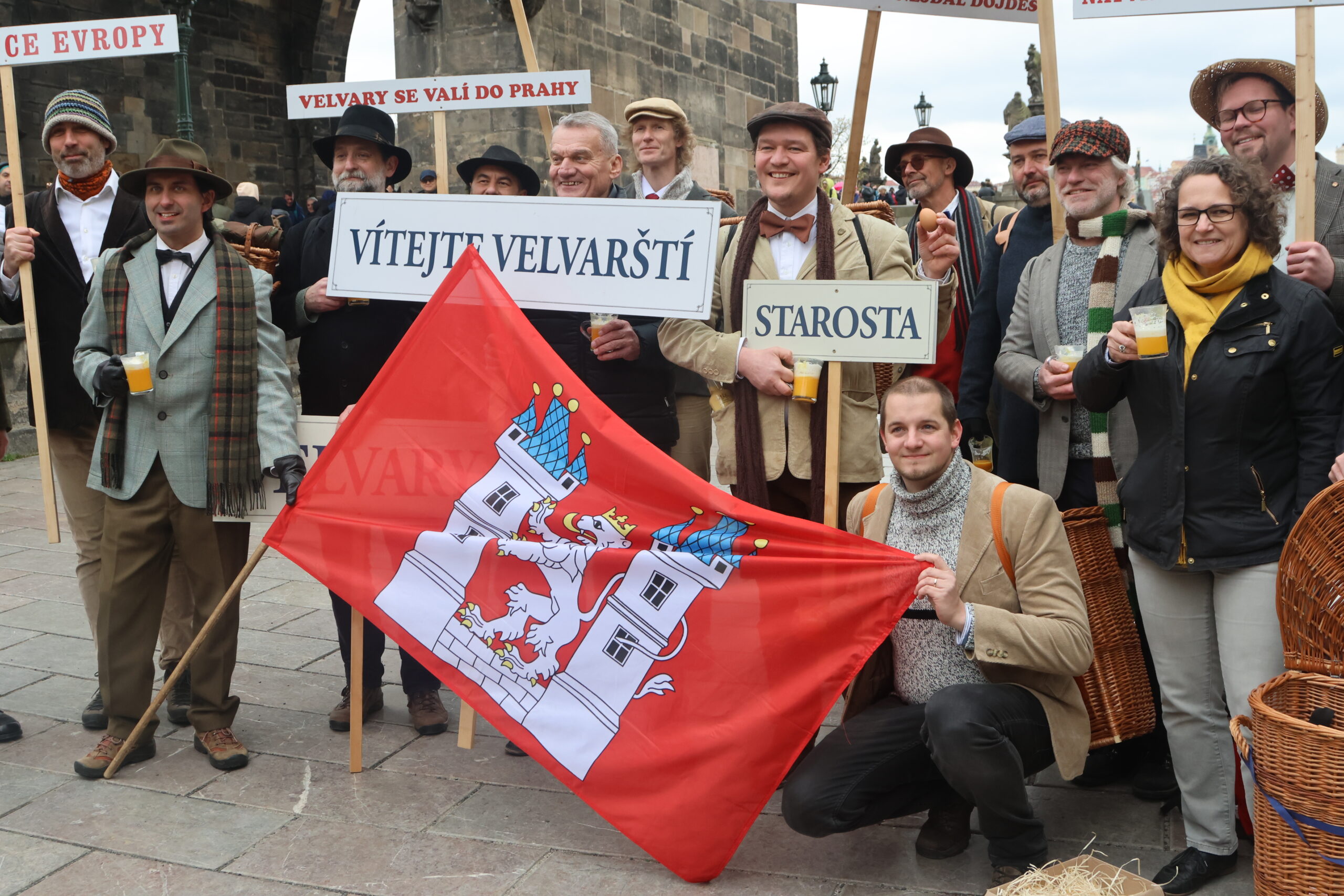V jejich čele i letos půjde starosta Velvar Radim Volák, který je zároveň předseda velvarského spolku Natvrdlých. „Cestou se k nim přidají další poutníci z okolních obcí a všichni se nakonec ve 13. hodin potkají v Praze u Malostranské věže odkud společně přejdou přes Karlův most na Křižovnické náměstí, kde slavnostně předají uvařená vajíčka purkmistrovi tedy primátorovi hlavního města Prahy Bohuslavu Svobodovi, starostce Prahy 1 Terezii Radoměršké a Muzeu Karlova mostu,” přibližuje průběh akce ředitel muzea Zdeněk Bergman a doplňuje, že přes Karlův most, kromě průvodu s vejci, projede také koňský povoz, který bude doprovázen zbrojnoši a dobovou středověkou kapelou.