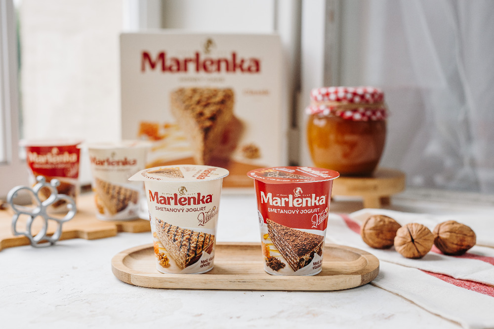 Chuť medových dortů Marlenka si podmanila doslova celý svět. Cestu si našla až do Mlékárny Valašské Meziříčí, kde se po měsících testování spojila kvalita obou výrobků a jejich dokonalé chutě. Zrodil se tak jogurt ve dvou variantách – Smetanový jogurt z Valašska MARLENKA klasický a Smetanový jogurt z Valašska MARLENKA s kakaem. Spojení tradičního smetanového jogurtu z Valašska s medovým dortem si okamžitě získalo srdce spotřebitelů. Oba typy jogurtu jsou na trhu velice oblíbené. Příznivci obou výrobků si s každou lžičkou mohou vychutnat lahodnou chuť snoubící v sobě tradici, poctivost a mistrovské umění každého z obou řemesel. Neobsahují žádné umělé konzervanty a barviva.