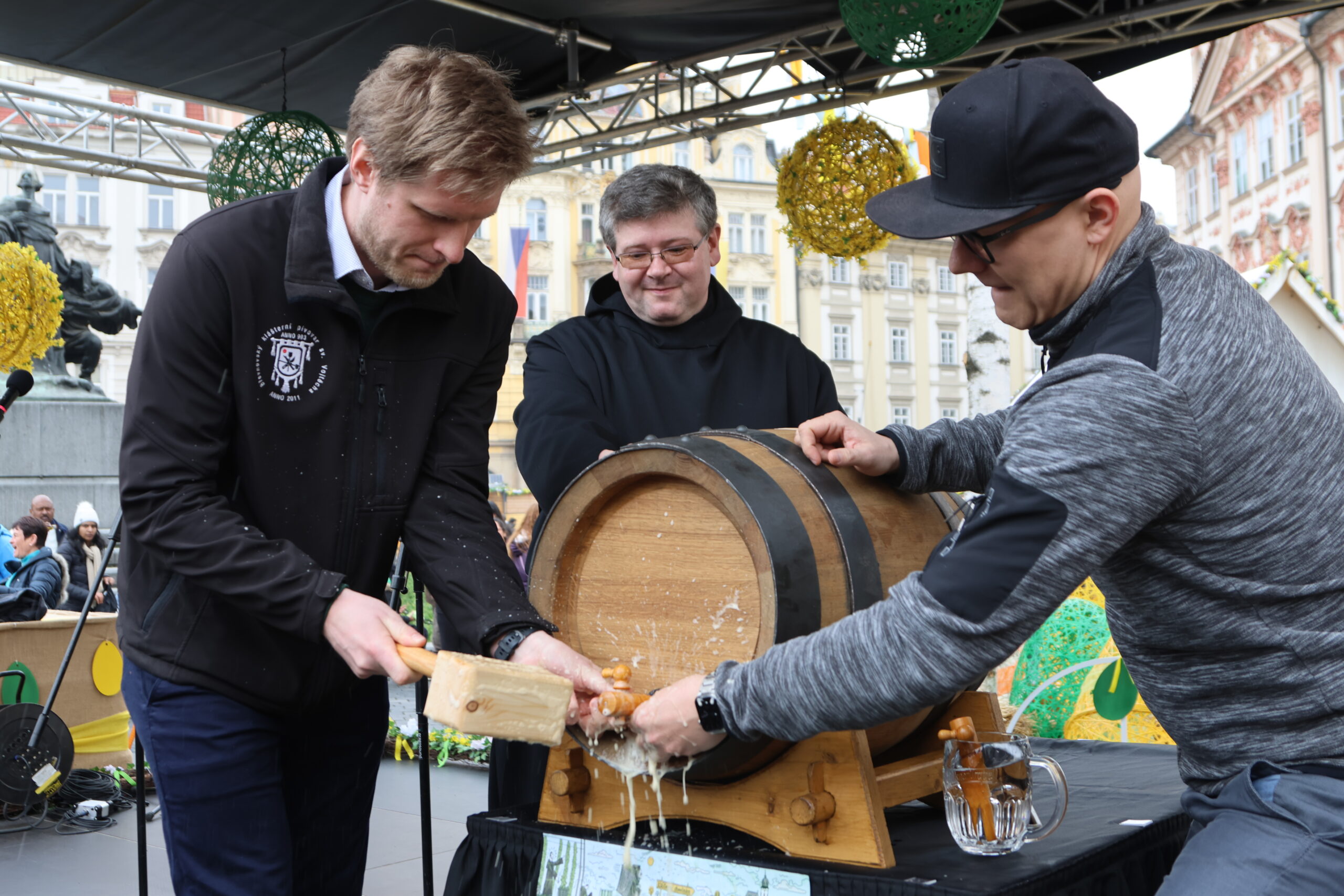 Slavnostní naražení dřevěného sudu s pivem Popeleční Benedict letos proběhlo v rámci Velikonočních trhů, 9. dubna od 16 hodin na Staroměstském náměstí.
