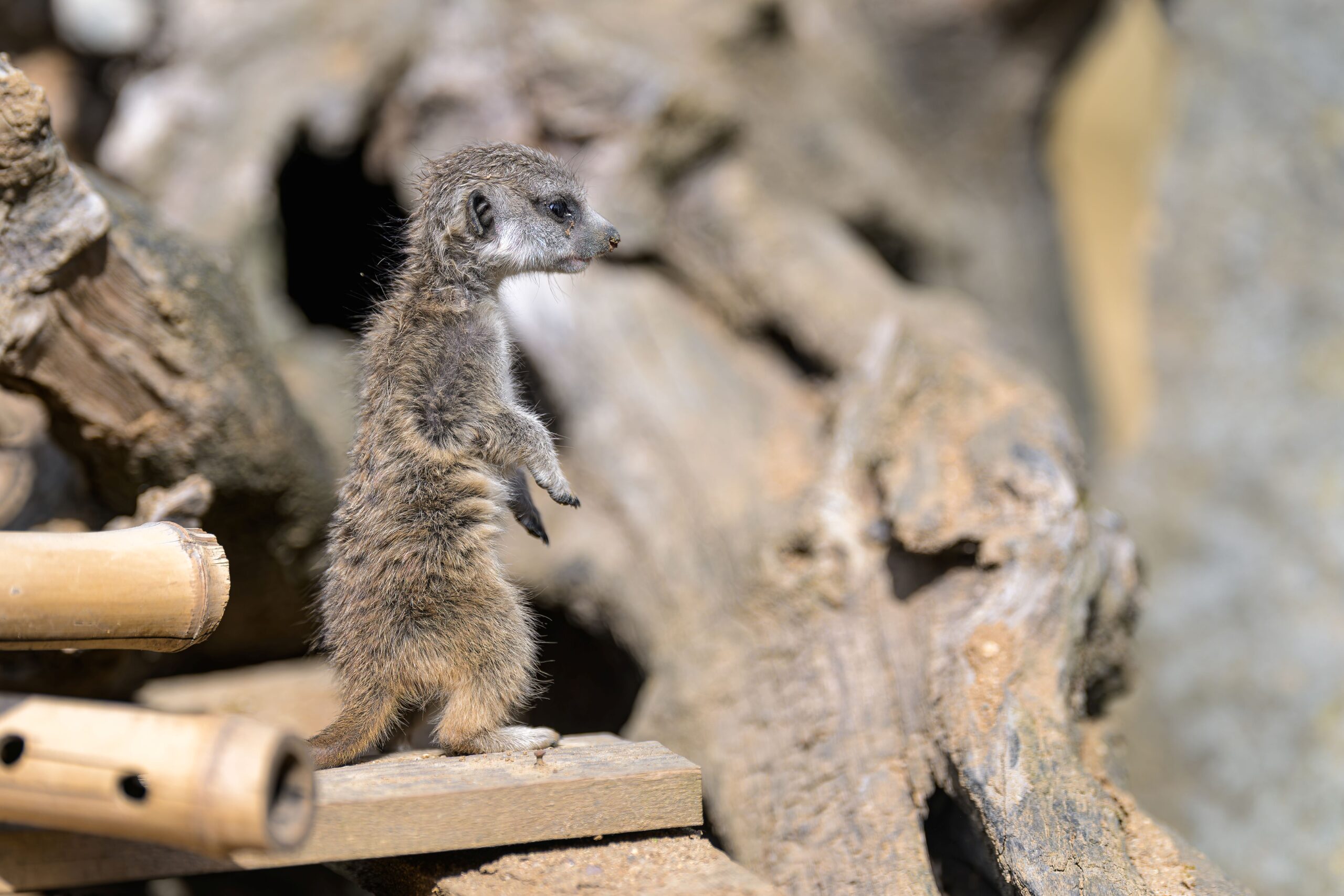 Foto 5: Kdo to stojí na stráži? Nejnovější přírůstek u surikat se v těchto dnech učí být platným členem své smečky. Foto Petr Hamerník, Zoo Praha