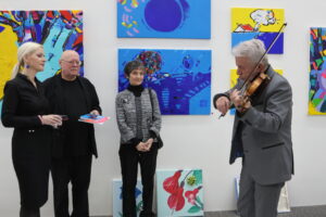 spoluautor výstavy v Nové síni je galerista, malíř, tvůrce reliefů a plastik, konkrétista, realista, autor, jak tomu žertem říká „obráztíčků“, tedy opravdu hodně velkých formátů s náměty z přírody, od portrétní tvorby, až ke svým oblíbeným motorkám. Máme podobnou náklonnost k tzv. „drzým“, zářivým barvám. Taktéž vedl galerii, organizoval a realizoval mnohé projekty. Rozumíme si nejen lidsky, ale máme i podobně barevný a mnohovrstevný pohled na umělecký svět. A tak tedy, jak jinak, než vystavovat společně. Václav zasahuje na této výstavě do prostoru formou reliéfů a plastik, já v dvourozměrných formách – plátny.