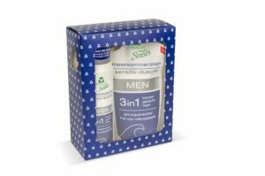 Dárková sada pro muže obsahuje sprchový gel s náhradní náplní. Gel s recepturou 3 v 1 pečuje o pokožku celého těla, pleť i vlasy. Osvěžující vůně moře dodává pocit čistoty a svěžesti. Šetrné složení na bázi rostlinných látek a mořských minerálů je pH neutrální, vhodné i pro citlivou pokožku. Receptura je bez parabenů, SLS, mikroplastů, ropných derivátů nebo EDTA. Dermatologicky testováno. Doporučená cena: 203,90 Kč