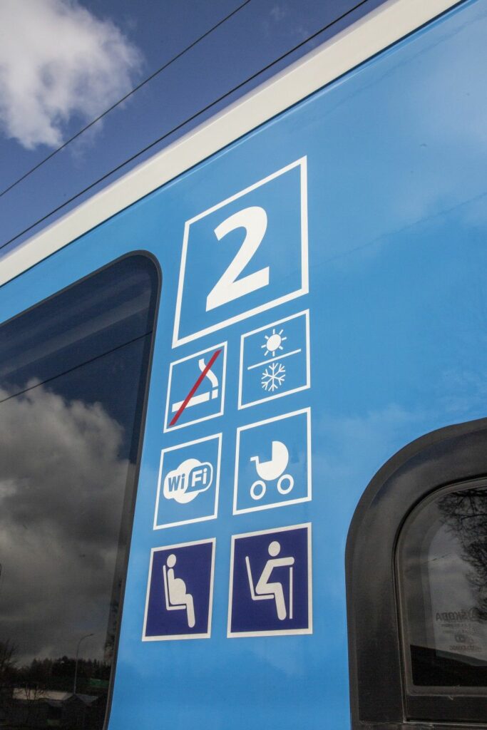 Vozidla vybavená klimatizací jsou obvykle označena u nástupních dveří nebo v interiéru symbolem lomítka, kdy v horní části je obrázek sluníčka a v dolní sněhové vločky.