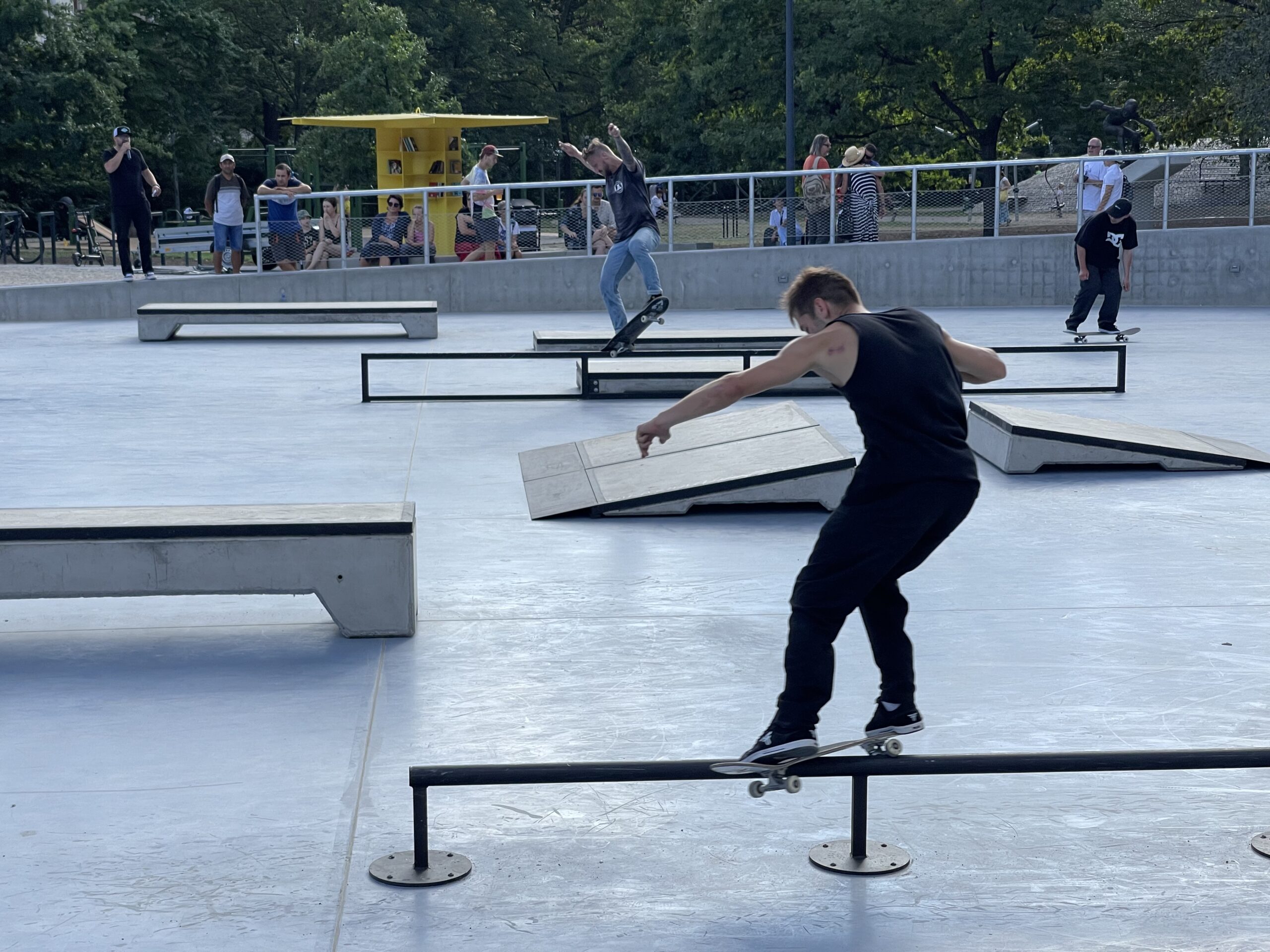 Projekt, který byl vybudován v neutěšeném prostoru pod Nuselským mostem, nabízí širokou škálu volnočasových aktivit pro všechny věkové skupiny obyvatel. Nachází se zde ovál s umělou trávou pro cvičení jógy nebo kompenzační cvičení seniorů, hřiště na pétanque, pingpongový stůl a nechybí ani občerstvení nebo interaktivní vodní prvek pro děti, který je zvlášť oblíbený v horkých letních dnech. Své příznivce si našel i oválný skatepark, který slouží nejen profesionálům, ale i začátečníkům. V zimě se pak ovál promění v kluziště, které hojně využívají i děti z blízkých základních škol. Je to zkrátka místo pro aktivní trávení volného času a setkávání s rodinou či přáteli.