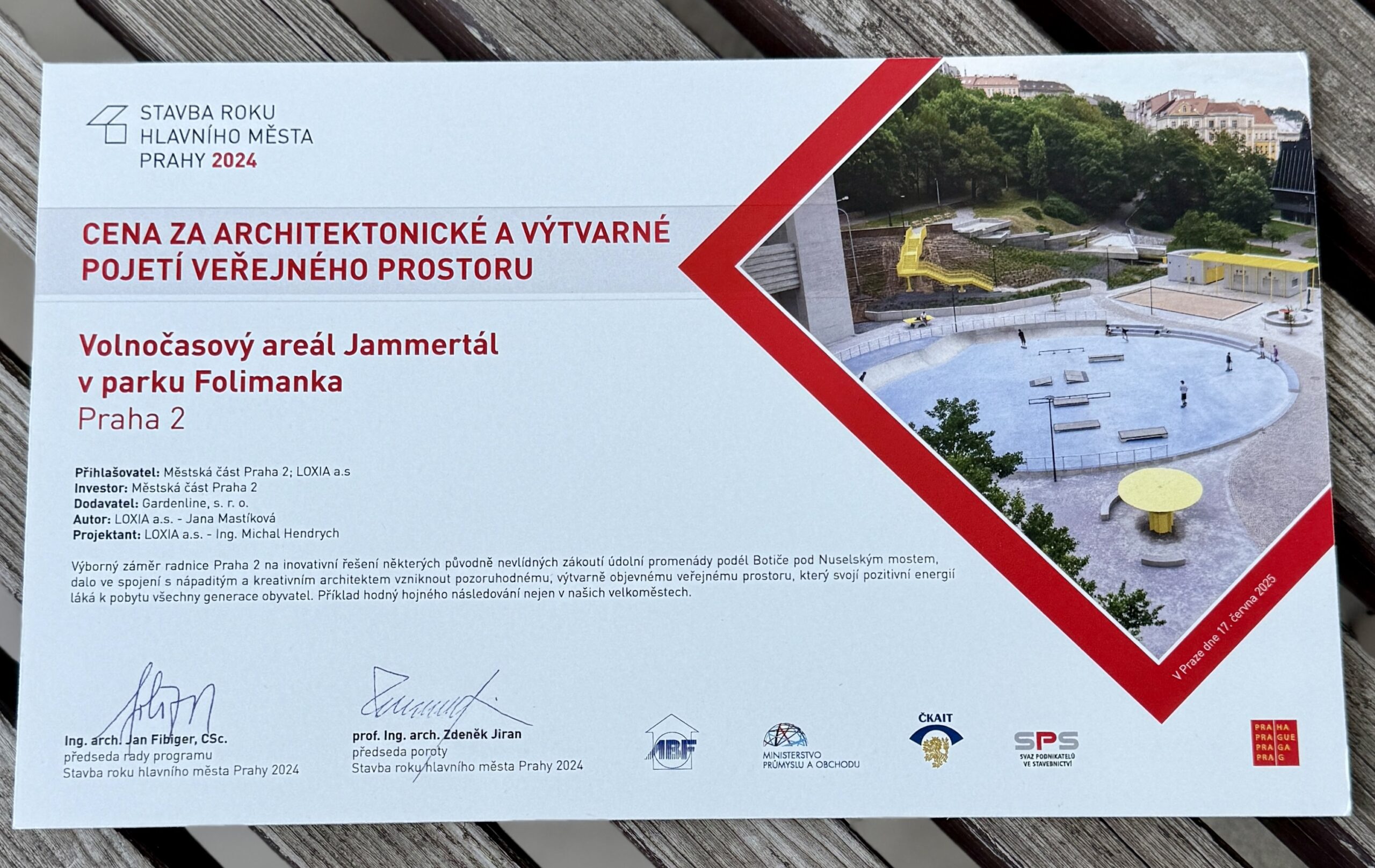 „Z této zprávy mám velkou radost. Ocenění odborné poroty je důležitou zpětnou vazbou nejen pro architektonickou společnost LOXIA, která areál projektovala, ale i pro nás jako pro zadavatele zakázky. Vybudováním nového volnočasového areálu došlo k oživení této části parku a Jammertal se zařadil mezi nejvyhledávanější místa naší městské části. Pevně věřím, že během prázdnin bude opět trhat návštěvnické rekordy,“ říká starosta Prahy 2 Jan Korseska.