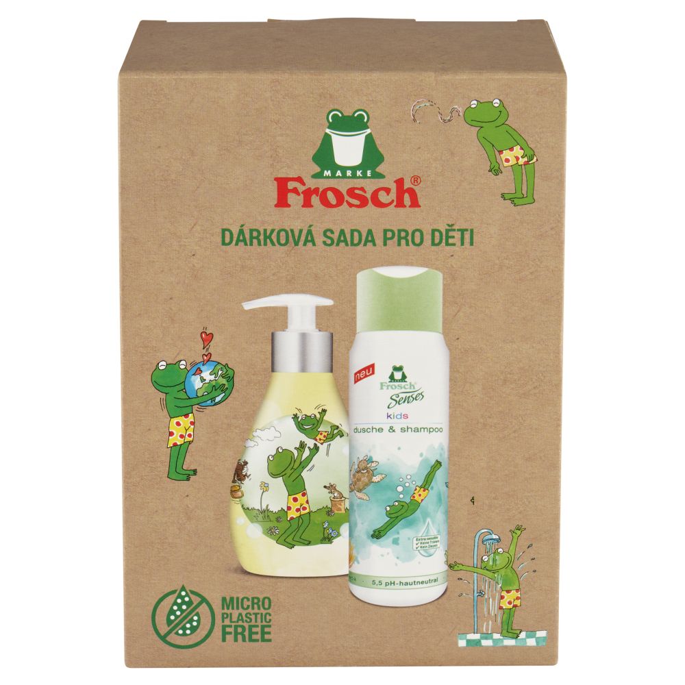 obsahuje sprchový gel a šampon 2v1 a tekuté mýdlo v dávkovači s přídavkem hydratačního panthenolu. Šetrné složení kosmetiky Frosch na bázi přírodních látek je pH 5,5 neutrální a vhodné i pro citlivou pokožku dětí. Výtažek z pšeničného proteinu obsažený v šamponu usnadňuje rozčesávání dětských vlásků a dodává jim lesk. Receptury neobsahují škodlivé chemické látky jako parabeny, ropné deriváty, mikroplasty nebo EDTA. Cena výrobku je 149 Kč.