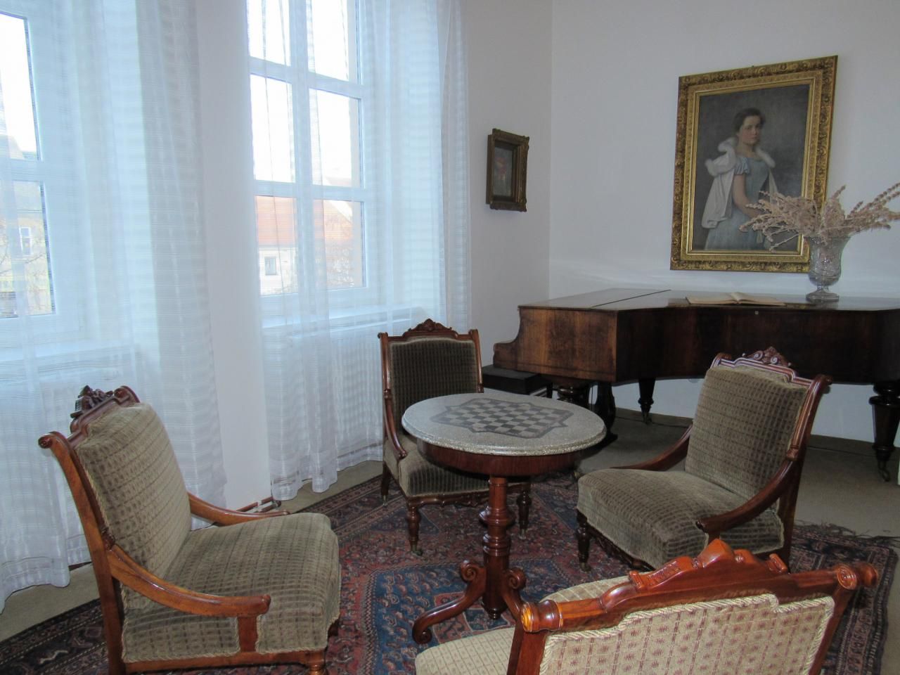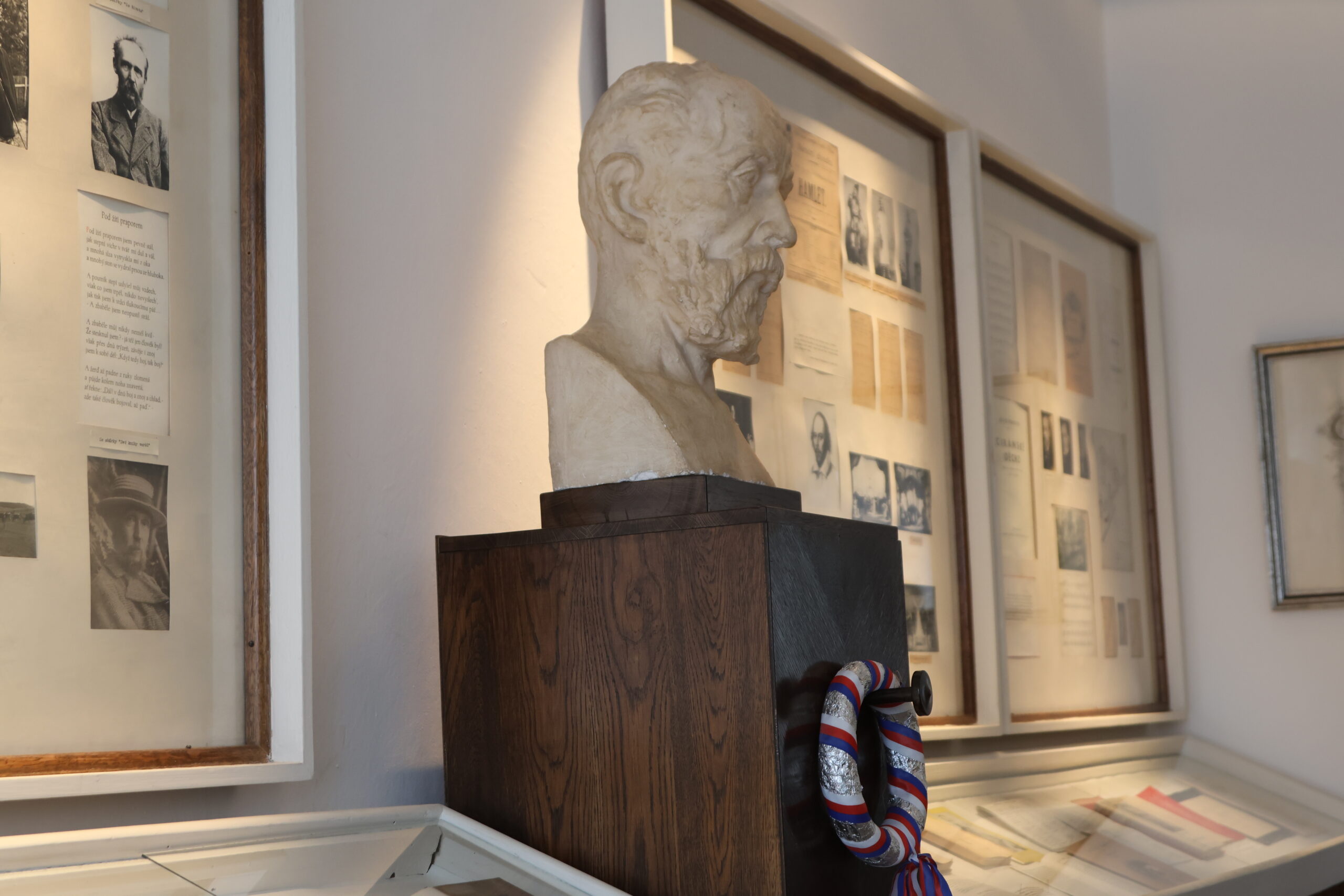 Přesunuli jsme se do Muzea J. V. Sládka a Městského muzea Zbiroh, které bylo zřízeno v roce 1952. Muzeum se nachází na původním místě rodného domku básníka, dům přestavěl na jednopatrovou budovu básníkův otec Petr Sládek v roce 1885. Nad vchodem do muzea je umístěna pamětní deska básníka od sochaře Antonína Odehnala. V 1.patře je Muzeum J. V. Sládka. Stálá expozice je jednou z nejstarších v České republice. Prostřednictvím nábytku a zařízení z pražského bytu, instalovaného ve třech místnostech, se přeneseme do Sládkova soukromého života.