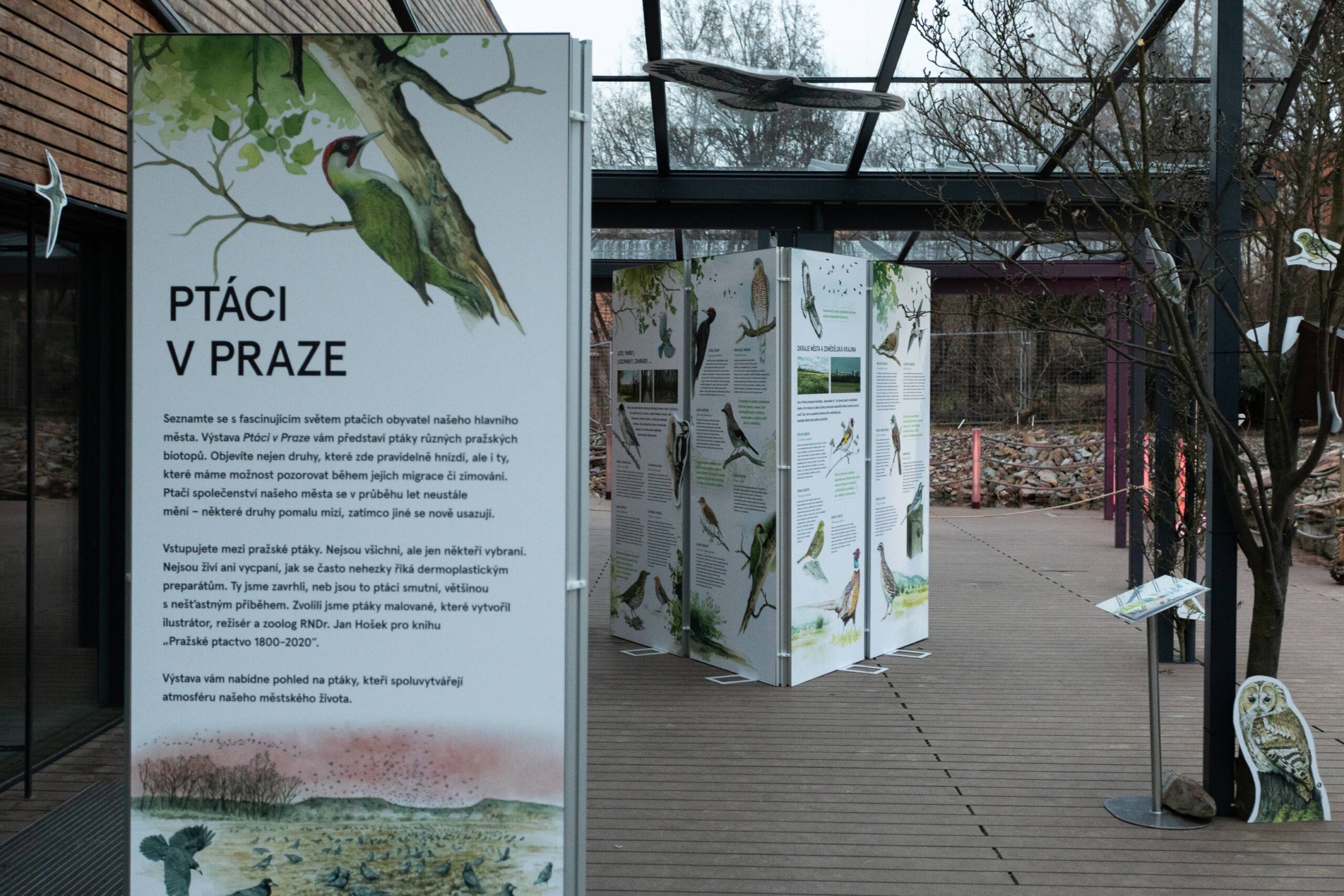 1800–2020, kterou vytvořil kolektiv autorů pod vedením Petra Voříška. Na panelech jsou představeny různé druhy ptáků prostřednictvím malovaných obrazů Jana Hoška, které jsou použité i v knize. Po krátkém seznámení s historií sledování ptáků na území Prahy návštěvníci poznají ptačí obyvatele jednotlivých hlavních biotopů v hlavním městě. Důraz je kladen především na ptáky hnízdící, ale pozornost je věnována i těm pravidelným hostujícím, s nimiž se můžeme setkat v době migrace či zimování.