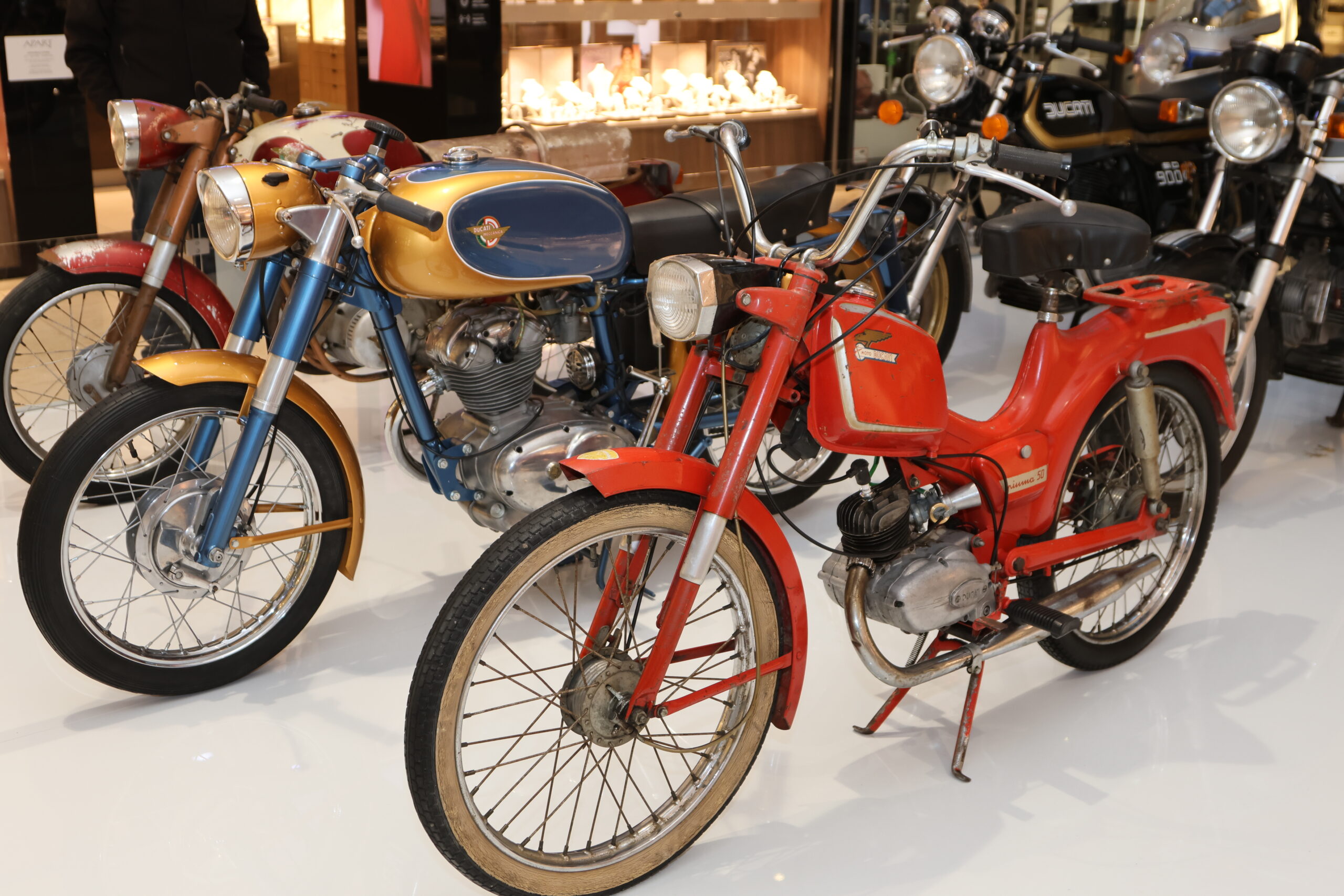 Mezi “historické kousky” probíhající expozice patří také modely Ducati 98 TS (rok výroby 1958), Ducati 125 Sport (rok výroby 1961), ikonický model Ducati Scrambler 350 (rok výroby 1973) a několik dalších.