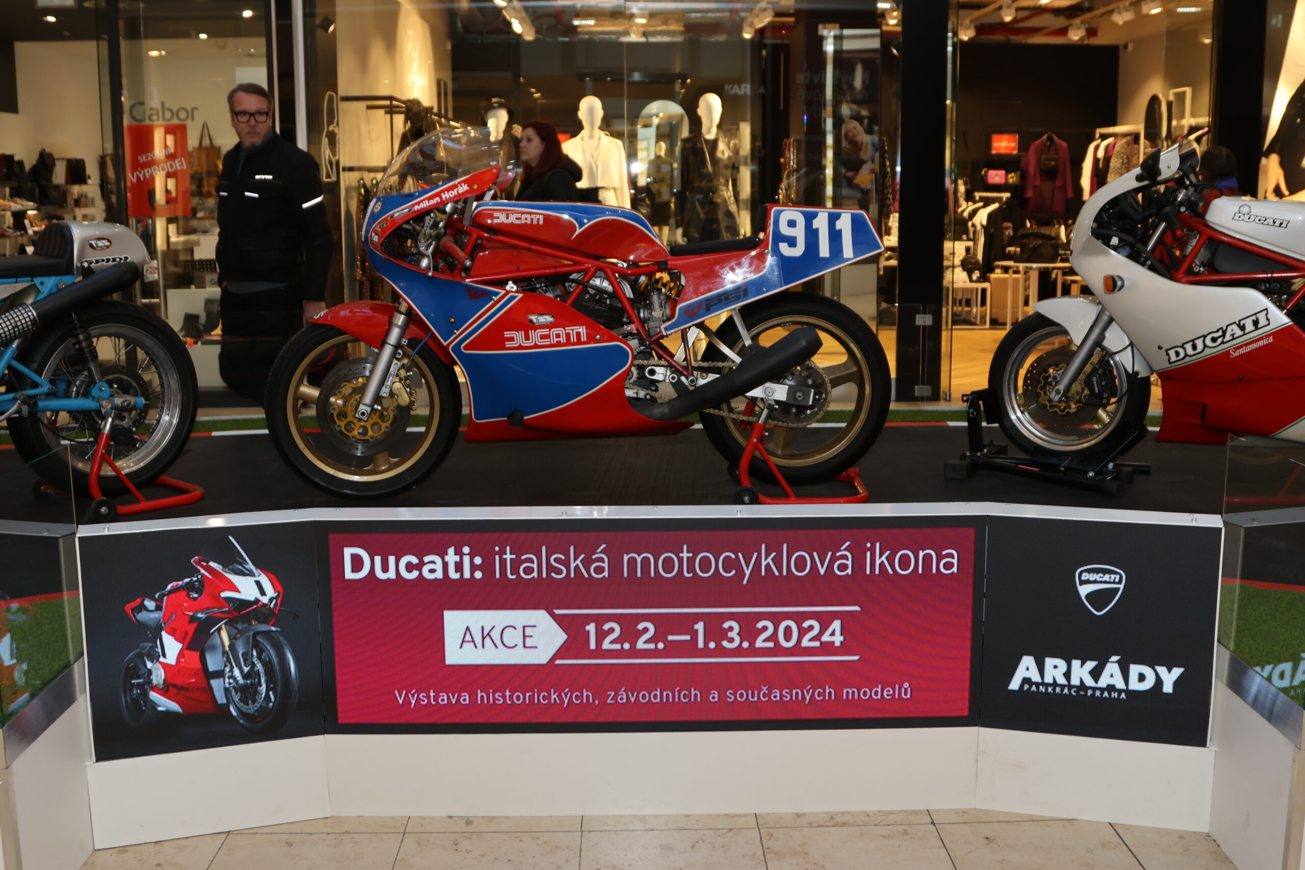 Praha, 12. února 2024 – Na tři desítky motocyklů slavné značky Ducati zdobí od pondělí 12. února pražské obchodní centrum Arkády Pankrác. Je to poprvé, kdy veřejnost může zhlédnout unikátní putovní výstavu, která představuje jak historii, tak současnost motocyklového fenoménu z Itálie. K vidění je legendární model Ducati Cucciolo z roku 1949, kterým celá produkce značky začala, ale také aktuální modely letošní sezony. Výstava probíhá pod záštitou importéra Ducati pro Českou republiku a potrvá až do 1. března. Její součástí je navíc doprovodný program, kdy si návštěvníci mohou otestovat závodní Ducati za asistence bývalého jezdce MotoGP Lukáše Peška nebo soutěžit o hodnotné ceny.