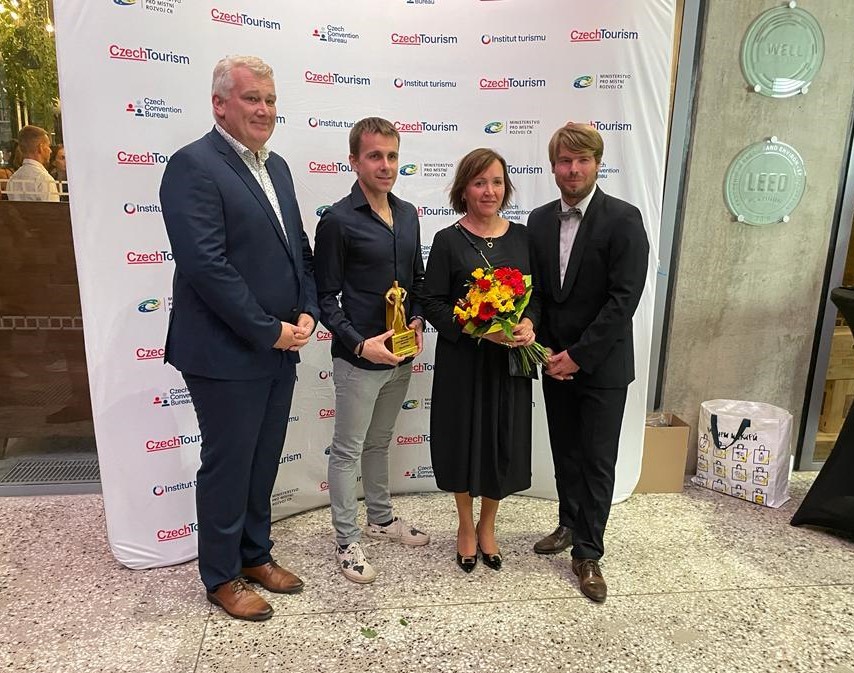 První fotografie zleva: Jaromír Polášek, Martin PísařAutokempink KONOPÁČ, Kateřina Šrámková, ředitel České centrály cestovního ruchu – CzechTourism Jan Hergeta