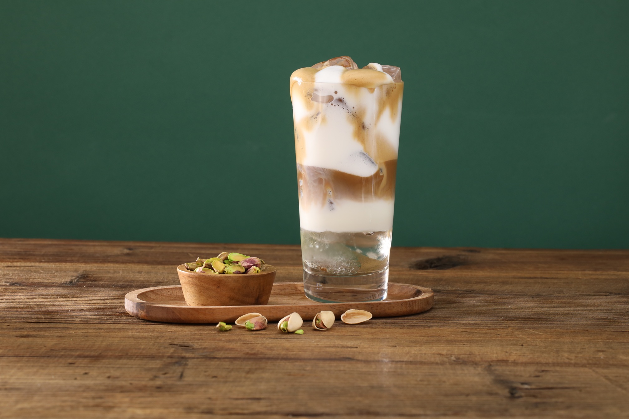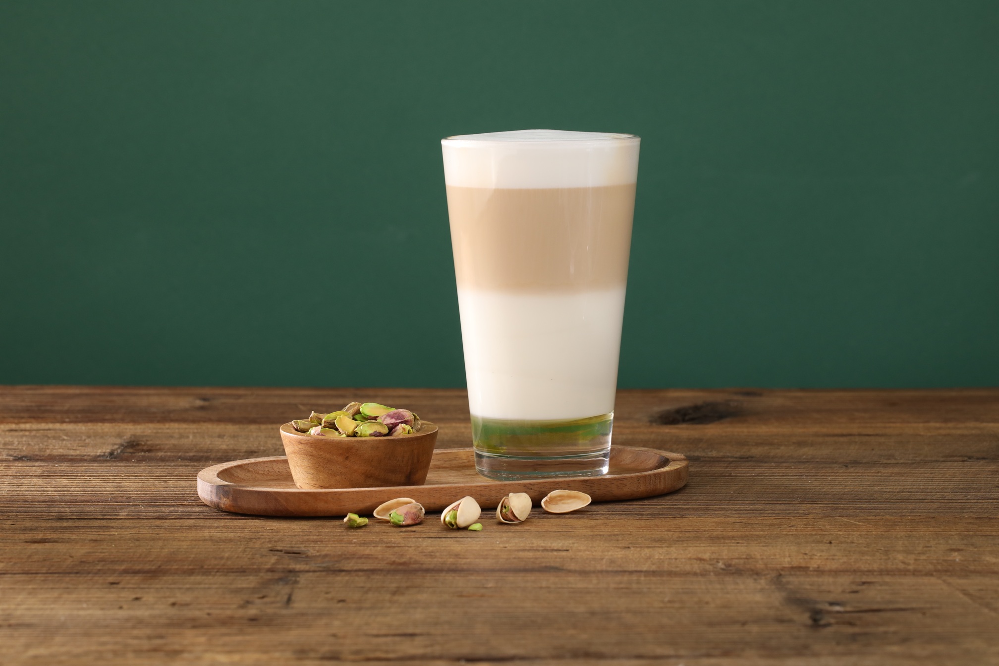 Pistáciové Latte Macchiato přináší jemně oříškový profil s krémovým tělem a pistáciovou příchutí. Nápoj na bázi dvojitého espressa je připravený pro ty, kteří preferují vyvážené latte s charakterem, ne dezert v šálku.