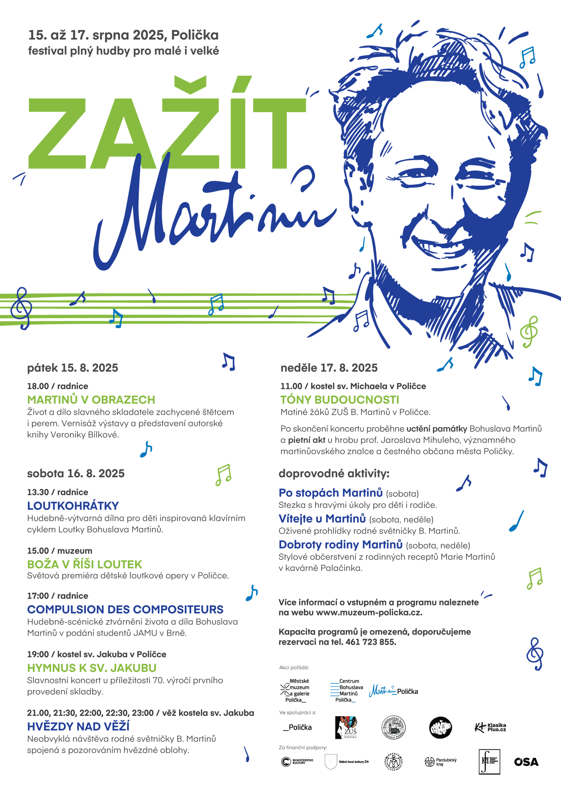 Festival pořádá Centrum Bohuslava Martinů s Městským muzeem a galerií Polička, akce se koná ve dnech 15. – 17. srpna 2025. Již nyní probíhá rezervace vstupenek na jednotlivé akce (rezervace na pokladně poličského muzea nebo 461 723 855).