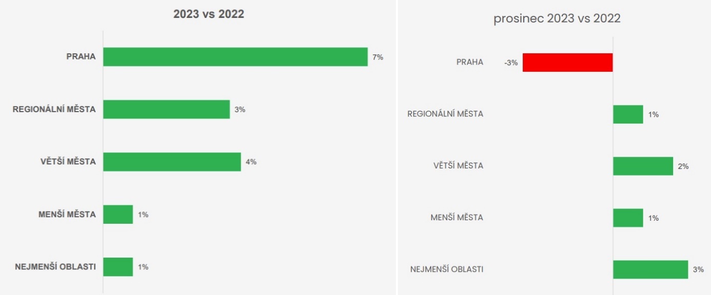 Oproti předchozím rokům rostly ceny v uplynulém roce napříč republikou poměrně rovnoměrně. Naprostá většina krajů zdražila o 5-7 procent. Dvouciferných hodnot dosáhl pouze Karlovarský kraj, kde ceny meziročně stouply o 11 procent. Naopak na Vysočině a v Pardubickém kraji byl meziroční rozdíl zcela minimální, pouhé 2, respektive 3 procentní body,“ konstatuje Petr Menclík.