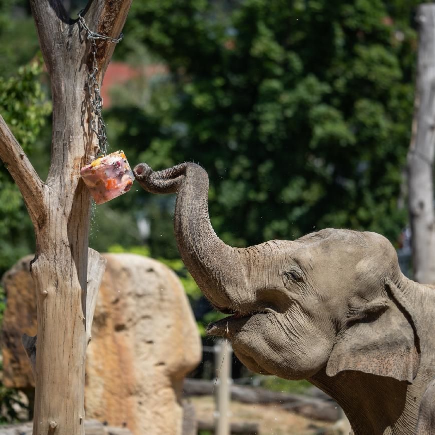 Foto 2: Pro slony indické představuje speciální zmrzlina nejen potravní zpestření, ale také zábavu a rozptýlení. Foto Petr Hamerník, Zoo Praha