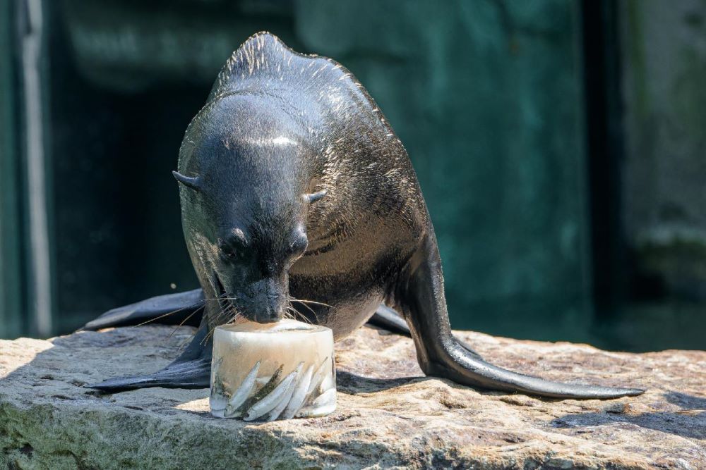Foto 3: Lachtani jihoafričtí dostanou ryby či olihně zamražené do ledových kostek během ukázky veterinárního tréninku ve 13.30. Foto Petr Hamerník, Zoo Praha
