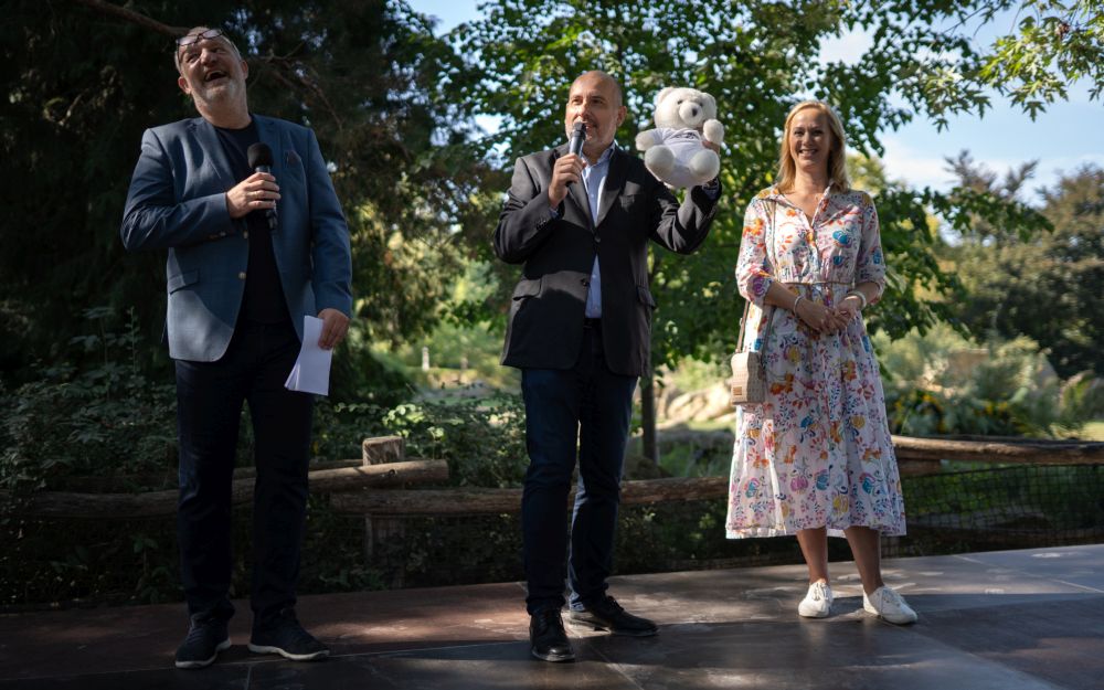 Foto 1: Během proslovů a rozhovorů s hosty nebyla tématem pouze historie, avšak došlo i na budoucí plány, a to zejména budování expozice Arktida pro lední medvědy a další zvířata dalekého severu. Na snímku zprava: náměstkyně primátora hl. m. Prahy Jana Komrsková, ředitel Zoo Praha Miroslav Bobek a moderátor Jan Kovařík. Foto Tereza Šolcová, Zoo Praha