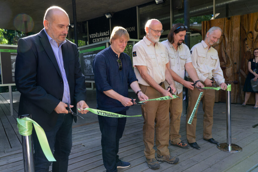 Foto 5: Ve 14 hodin proběhla slavnostní vernisáž výstavy Významné odchovy Zoo Praha. Dvě desítky nejdůležitějších chovatelských úspěchů spolu s dobovými fotografiemi si mohou lidé prohlédnout na terase Vzdělávacího centra. Na snímku zleva: ředitel Zoo Praha Miroslav Bobek, herec a bavič Lukáš Pavlásek, kurátor plazů Petr Velenský, kurátor ptáků Antonín Vaidl a kurátor savců Pavel Brandl. Foto Petr Hamerník, Zoo Praha