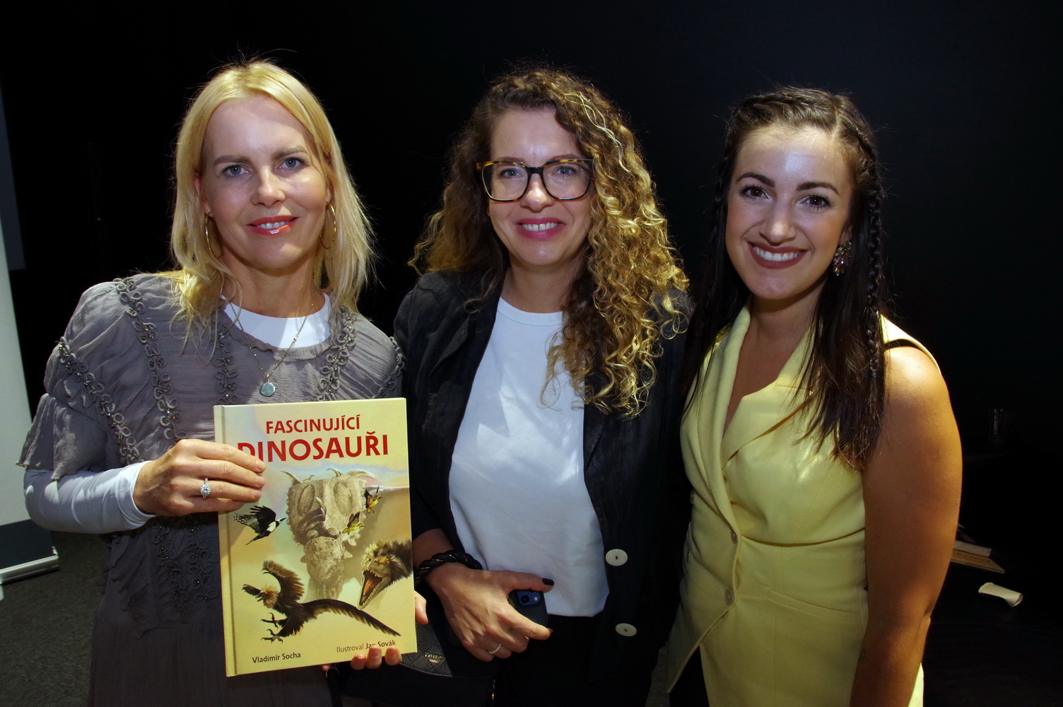 Není tedy divu, že Štěpánka Duchková, Michaela Nosková, Markéta Martiníková, Genny Ciatti a Dominika Býmová dorazily na křest knihy o dinosaurech i se svými ratolestmi. Nejstarším byl patnáctiletý Adam Štěpánky Duchkové, nejmladší se teprve narodí. Dominika Býnová totiž přivede již za měsíc svého druhého potomka, ačkoli pokročilé těhotenství na ní téměř nebylo vidět. „Je fajn, že se malý zatím knížky nabaží a za rok – dva, až ji bude sestřička chtít, nebude mít problém ji půjčit“, podotkla s úsměvem Dominika.