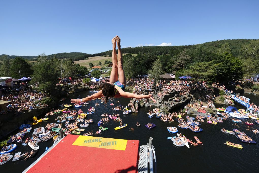 Je to už dvacet pět let, kdy se v lomu v Hřiměždicích u Příbrami uskutečnil první ročník závodů ve skocích do vody z extrémní výšky. Do lomu opět zavítají skokani z celého světa, aby předvedli dechberoucí výkony při skocích z výšky až 30 metrů nad vodní hladinou. Dalšími tahouny programu u zatopeného žulového lomu je raper Yzomandias, aktuální hvězda Rohony, raper Rest s kapelou Champion Sound, legendy tuzemské scény PSH, zpěvák 7krát3 s živým bandem nebo djové Matamar, TK27, Magenta, Roxtar a mnoho dalších.