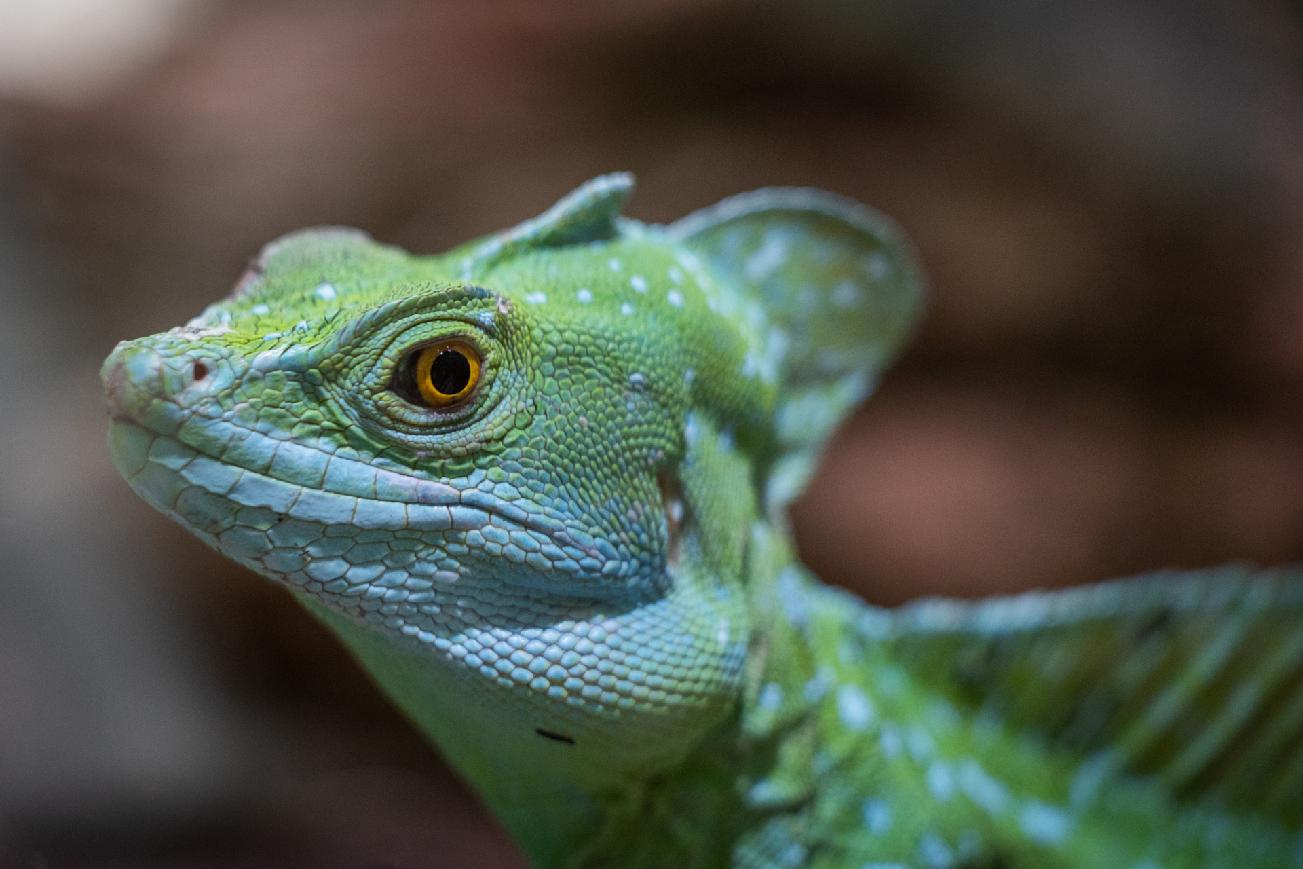 Foto 2: Bazilišek zelený. Při pohledu na něj sice nezkameníte, zato vás může překvapit „chůzí“ po vodě. Foto Tereza Mrhálková, Zoo Praha