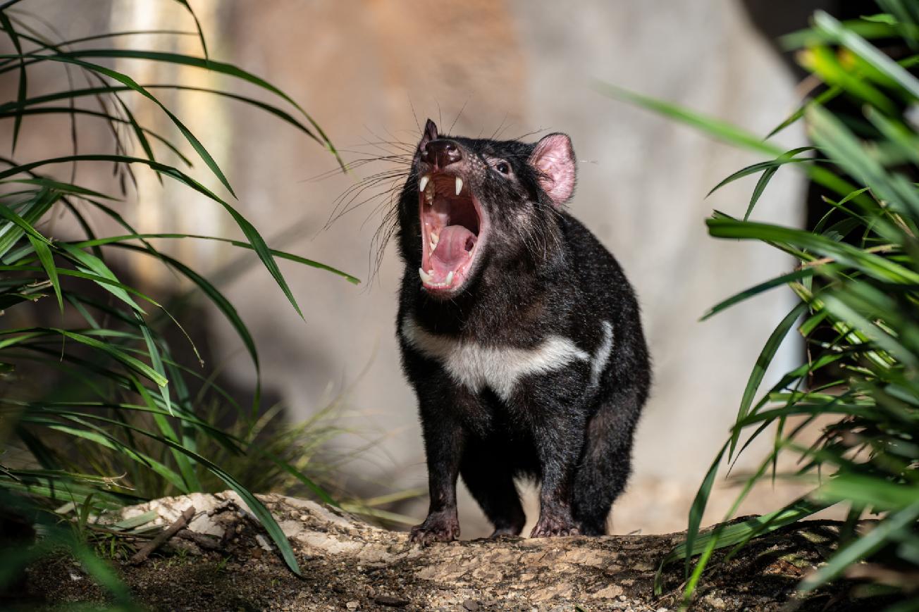 Foto 1: Ďábel medvědovitý. Do pekla vás neodnese, ale pokud se někdy vyskytnete v Darwinově kráteru v Zoo Praha během jejich krmení, možná vám bude tuhnout krev v žilách. Foto Oliver Le Que, Zoo Praha